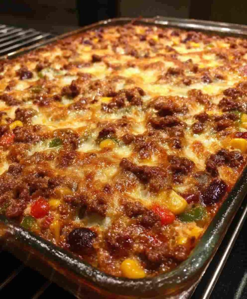 A hearty, family-friendly casserole made with seasoned ground beef, beans, vegetables, and melted cheese. Perfect for busy weeknights, potlucks, or meal prep.