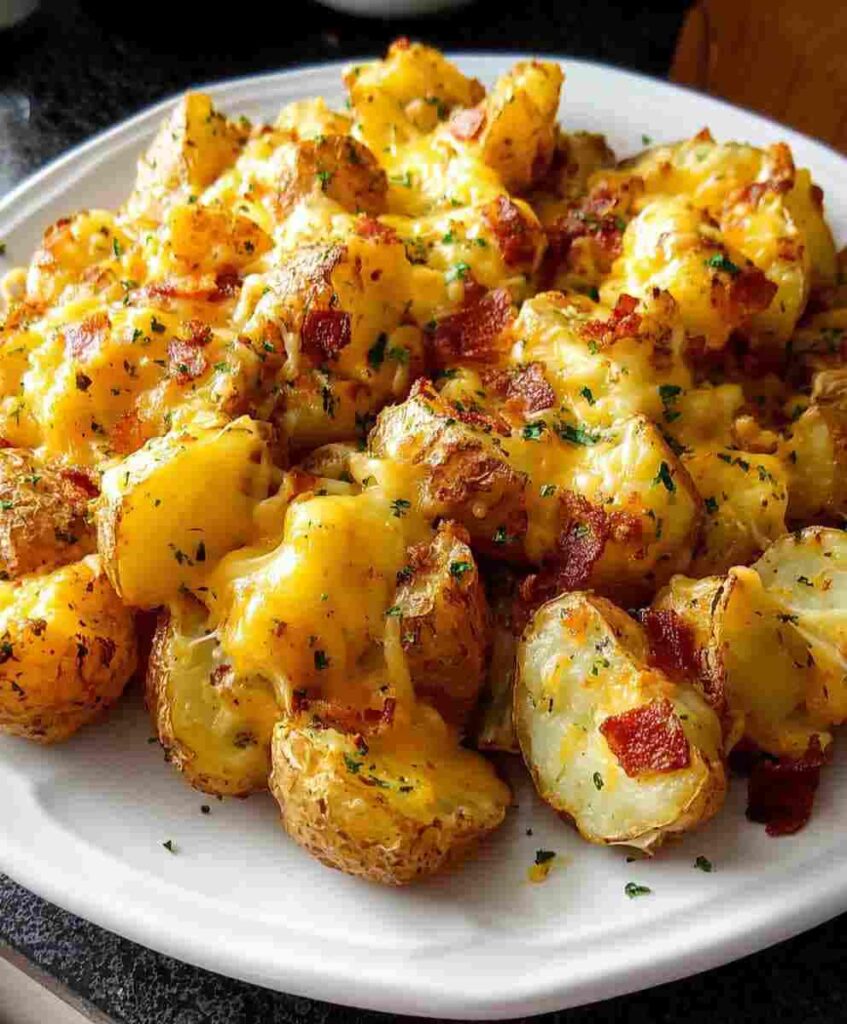 If you’re looking for a side dish that delivers bold flavor, irresistible texture, and universal appeal, Cheesy Ranch Oven Roasted Potatoes are exactly what you need. This recipe combines crispy oven-roasted potatoes with savory ranch seasoning, melted cheddar cheese, and smoky bacon for a dish that feels indulgent yet incredibly easy to prepare.