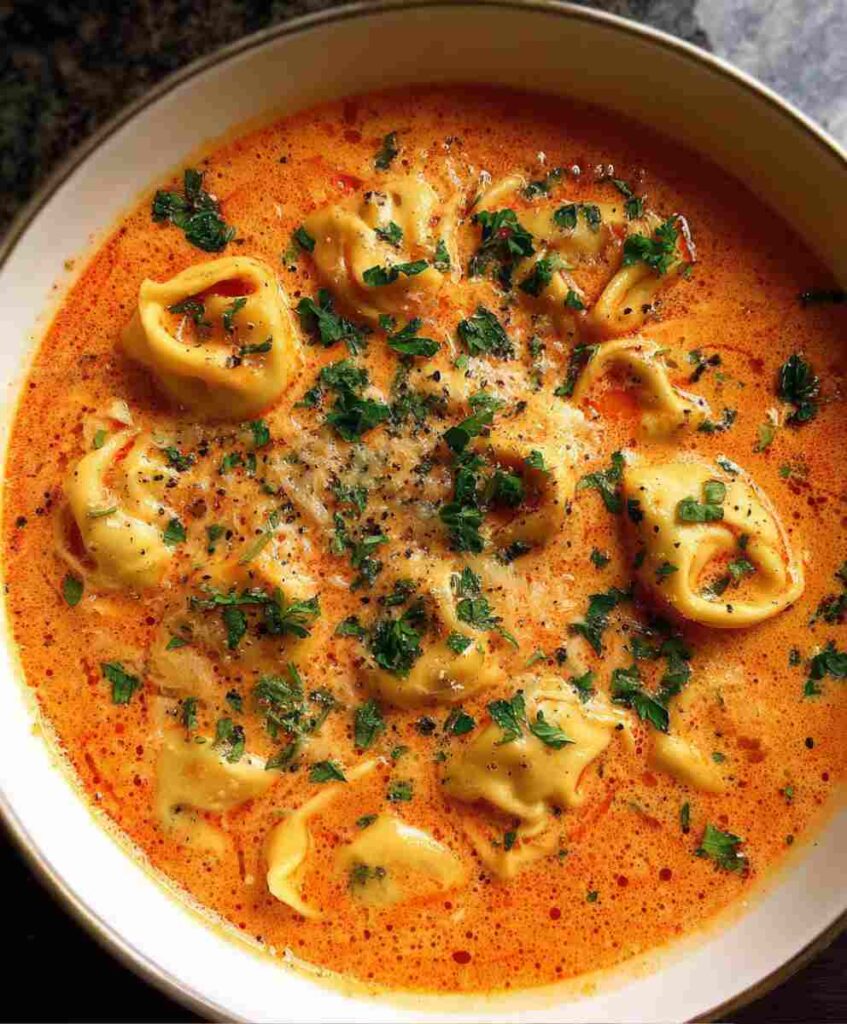 Cheesy Tomato Tortellini Soup is the ultimate cozy meal—rich, creamy, and packed with comforting flavors. This hearty soup combines tender cheese-filled tortellini with a velvety tomato base, finished with Parmesan for extra richness.