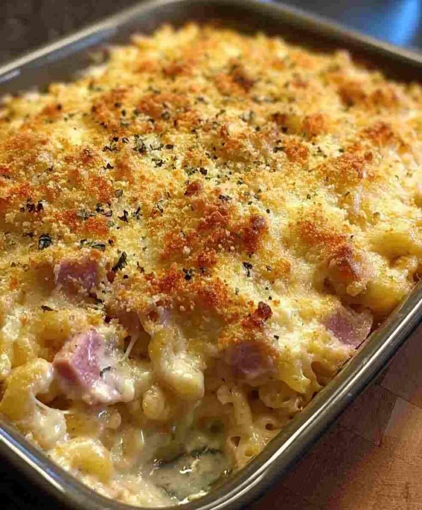 Instead of breading and frying individual portions, this casserole brings everything together in one dish. Tender pasta, savory rotisserie chicken, creamy Dijon-infused sauce, and a golden, crunchy topping create a satisfying meal that delivers restaurant-quality flavor without complicated steps. It’s hearty, comforting, and ideal for feeding a crowd.
