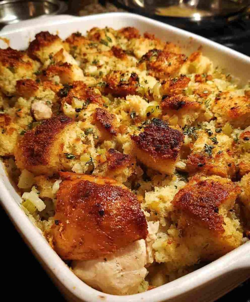 • Chicken Broth – Moistens the stuffing so it bakes up tender and flavorful, not dry.