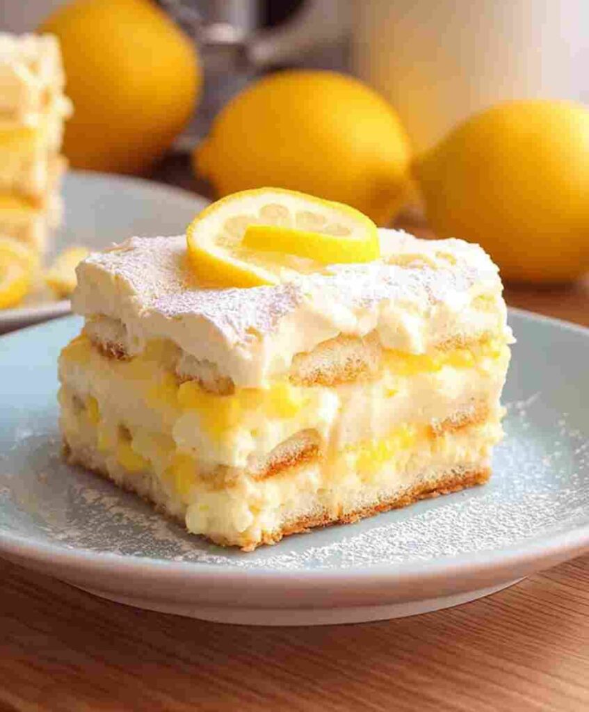This bright and creamy Lemon Tiramisu is a refreshing twist on the classic Italian dessert, layered with citrus-soaked ladyfingers and a light mascarpone lemon cream.