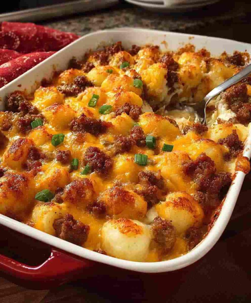 This casserole brings together the best of both worlds—crispy potatoes and savory ground beef—all topped with melted cheese. Here’s why it’s guaranteed to be a repeat dinner favorite: