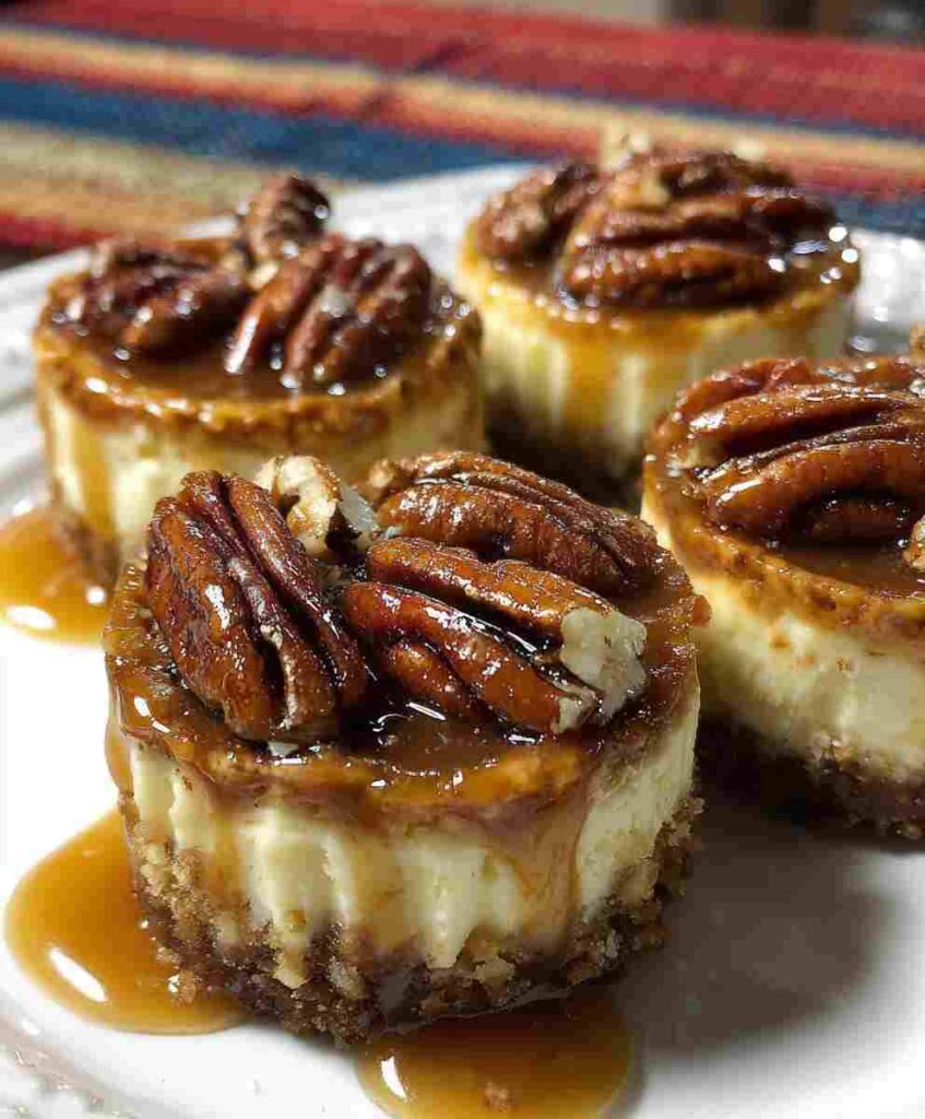 Mini Pecan Pie Cheesecakes combine creamy vanilla cheesecake with a gooey pecan pie topping, all on a buttery graham cracker crust. Perfect for holidays, parties, or portion-controlled desserts that taste decadent and rich.