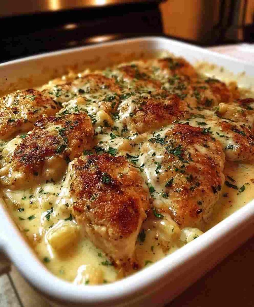 If you’re searching for a family-friendly dinner recipe that’s both simple and restaurant-quality, this Crispy Parmesan Chicken Bake is the answer. Golden-brown breaded chicken is layered with rich marinara sauce, melted mozzarella, and fresh basil, creating a comfort food classic that will please any crowd.