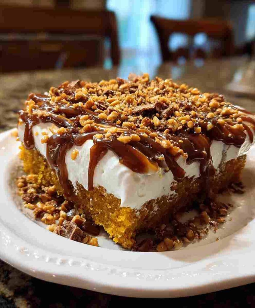 If you’re searching for the ultimate fall dessert that’s easy to make yet tastes like it came straight from a bakery, this Pumpkin Poke Cake is exactly what you need. It combines the warm, spiced flavors of pumpkin with creamy sweetness, toffee crunch, and rich caramel drizzle. This crowd-pleasing dessert is perfect for Thanksgiving, potlucks, or cozy fall evenings when you’re craving something indulgent.