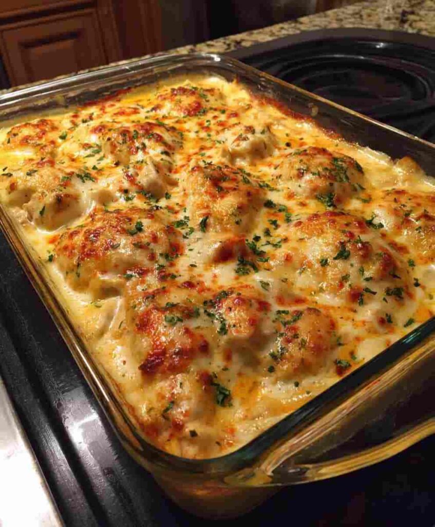- Bake uncovered for 25–30 minutes, or until chicken reaches 165°F (74°C) internally.