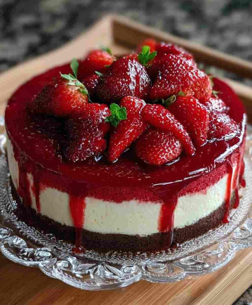 Red Velvet Strawberry Cheesecake is a stunning layered dessert that combines the rich, cocoa-kissed flavor of red velvet cake with a light, creamy strawberry cheesecake topping. It’s vibrant, elegant, and guaranteed to impress at any gathering.