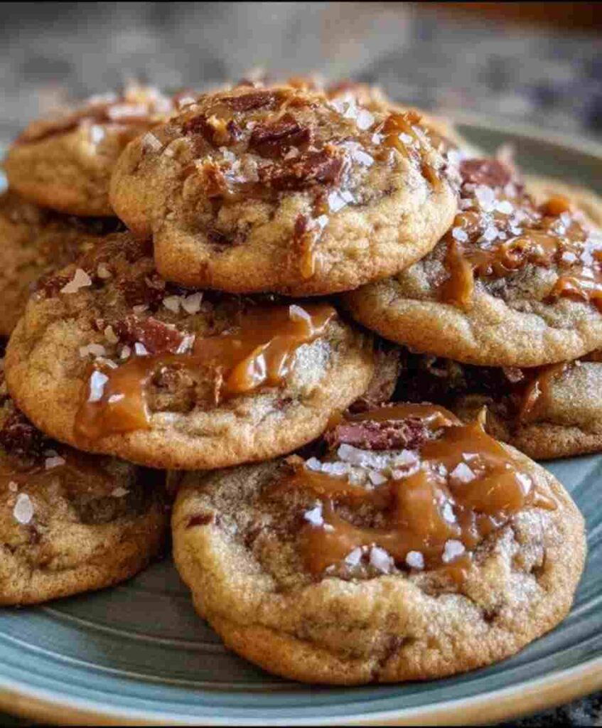 Few desserts can compete with the irresistible combination of sweet caramel, buttery toffee, and a delicate touch of sea salt. These Salted Caramel Toffee Cookies deliver everything cookie lovers crave: crisp edges, soft centers, rich caramel flavor, and a satisfying crunch in every bite. Perfect for holidays, bake sales, family gatherings, or everyday indulgence, this recipe creates cookies that taste like they came straight from a professional bakery.