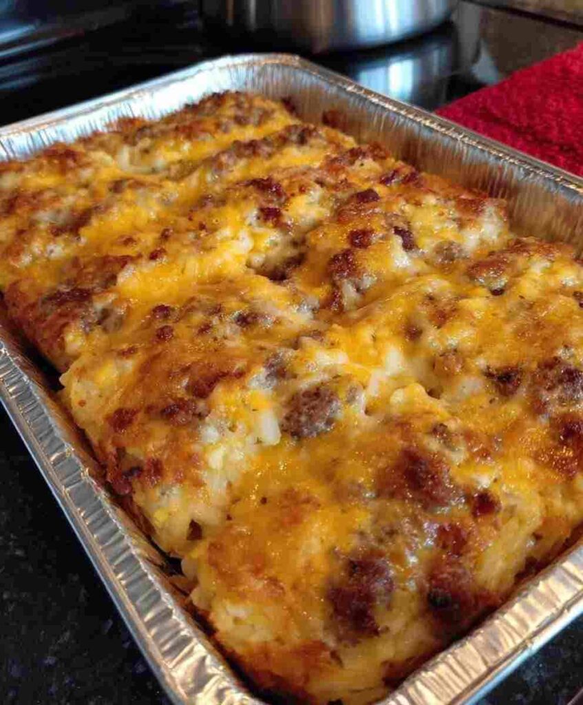 A hearty breakfast casserole loaded with crispy hashbrowns, savory sausage, creamy cheese, and fluffy eggs. Perfect for holiday mornings, brunch, or meal prep.