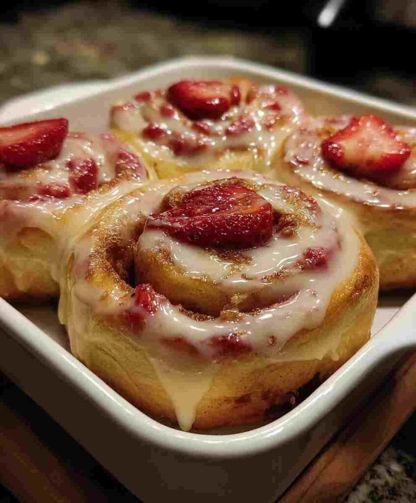Strawberry Cheesecake Cinnabon Rolls are the ultimate fusion of two beloved desserts: classic cinnamon rolls and creamy strawberry cheesecake. These soft, fluffy rolls are swirled with buttery cinnamon sugar, layered with a rich strawberry cheesecake filling, and finished with a smooth cream cheese glaze that melts into every warm bite.