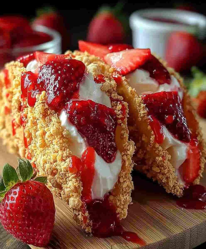 Strawberry Crunch Cheesecake Tacos are a fun, creative dessert that combines the creamy richness of classic cheesecake with the sweet freshness of strawberries and the buttery crunch of a graham cracker shell. This no-bake recipe delivers big flavor with minimal effort, making it perfect for warm-weather entertaining, parties, and family gatherings.